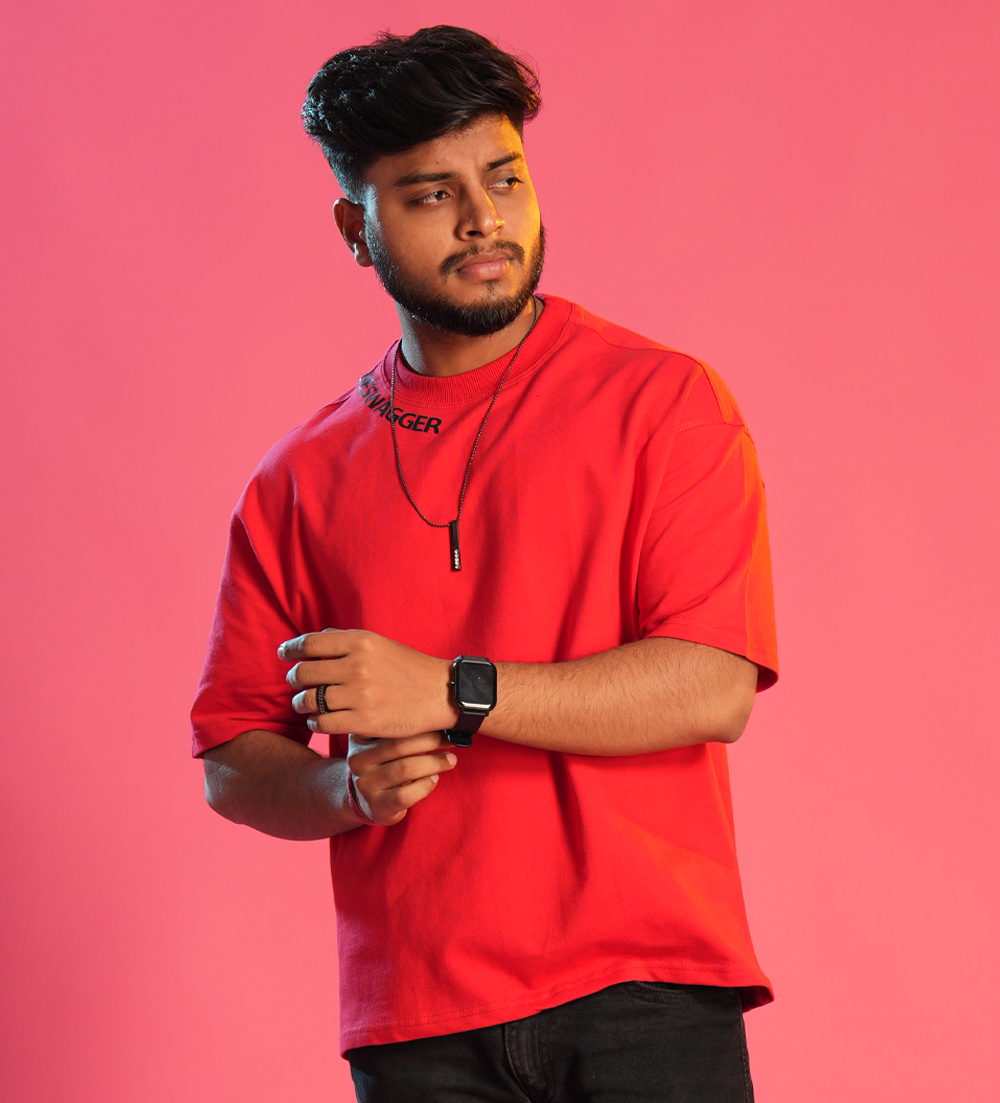 Where beauty and darkness collide. This fiery red oversized t-shirt features a powerful back print of blooming flowers pierced with blades and skulls—symbolizing life, death, and rebirth. The bold typography “DEATH GARDEN” with an explicit-style barcode design gives it that raw, underground appeal.